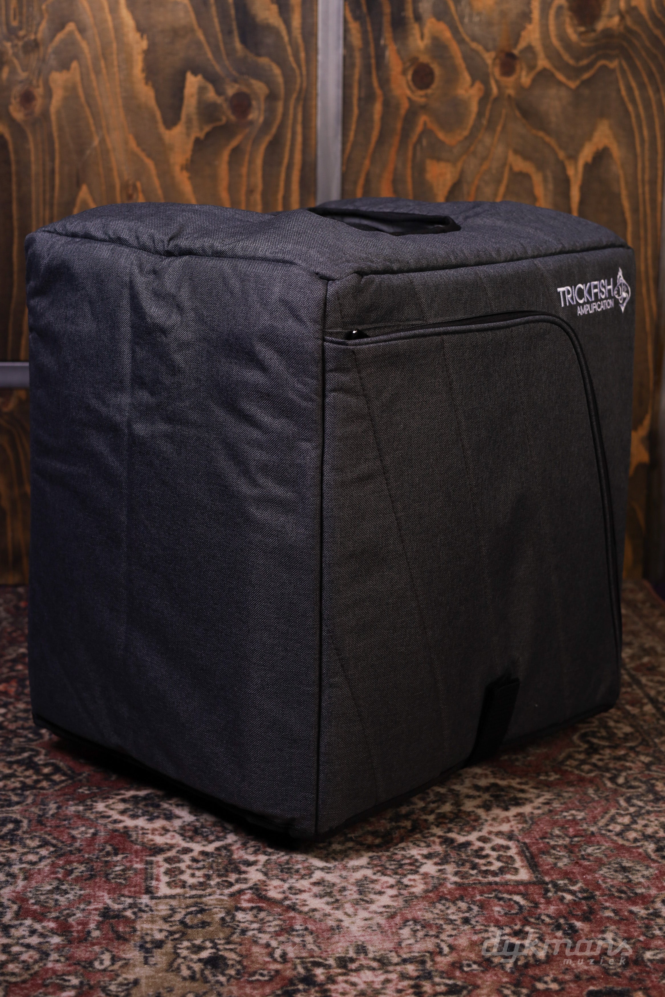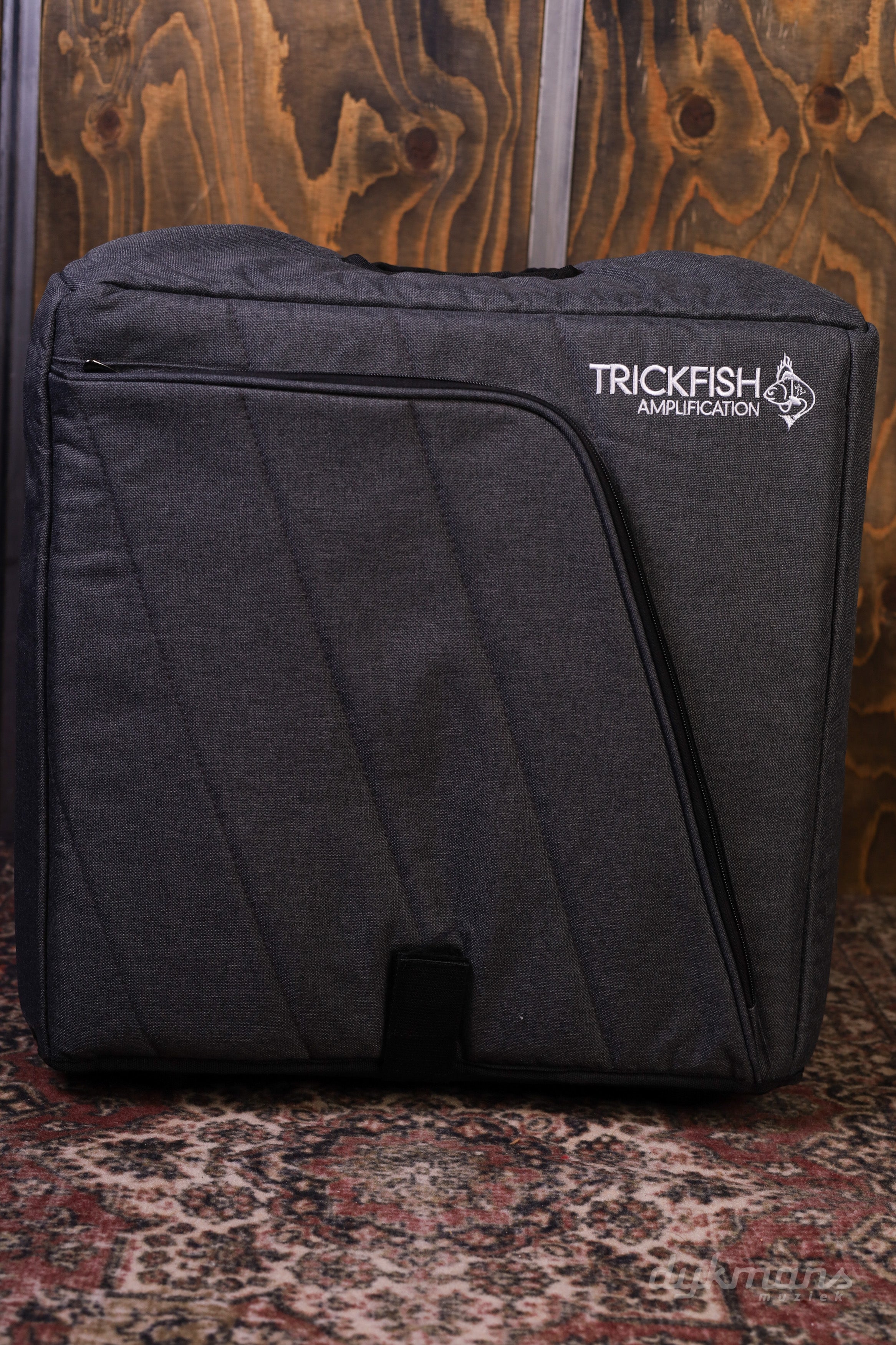 They has thick foam padding to protect the cabinet, a durable, tear-resistant outer cover, and a plush interior, and a strap to hold it in place. The outer pocket is spacious enough for cables, sheet music, or even a few pedals. Also covered with gray diagonal stitched fabric and white embroidered Trickfish logo, it’s the perfect match for the amp bag!