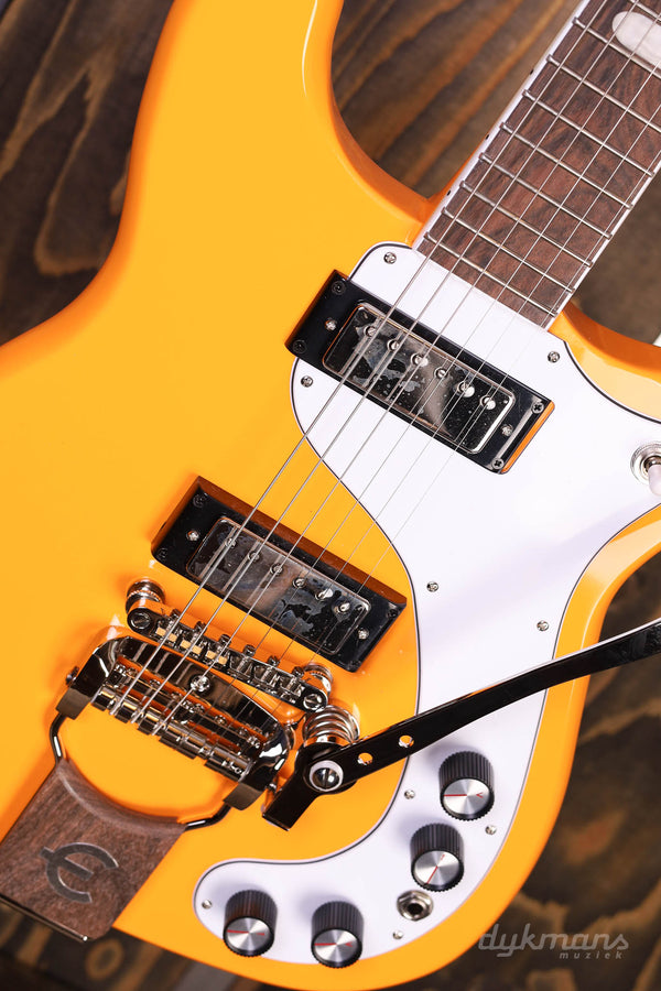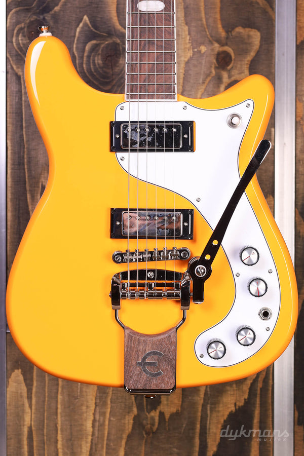 The Crestwood first appeared in 1958 and it was renamed Crestwood Custom in 1959; it was Epiphone's first two-pickup solid body electric guitar design. The latest limited edition Crestwood Custom celebrates Epiphone's 150th anniversary. It features an asymmetrical solid mahogany double-cutaway body that gives players unhindered upper fret access, a mahogany neck with a comfortable 60s SlimTaper™ D profile, and an Indian laurel fretboard with oval inlays. The headstock is the popular “Batwing” style, with Wilkinson® six on a plate inline tuners with metal buttons. The electronics feature a pair of made-in-the USA Gibson™ Mini Humbuckers™ that are wired to CTS™ potentiometers and a Switchcraft 3-way toggle switch and 1/4" output jack. An Epiphone Tremotone vibrato tailpiece gives you extra expressive capabilities The included 150th Anniversary Historic Hardshell Case features an Epiphone 150th Anniversary logo.