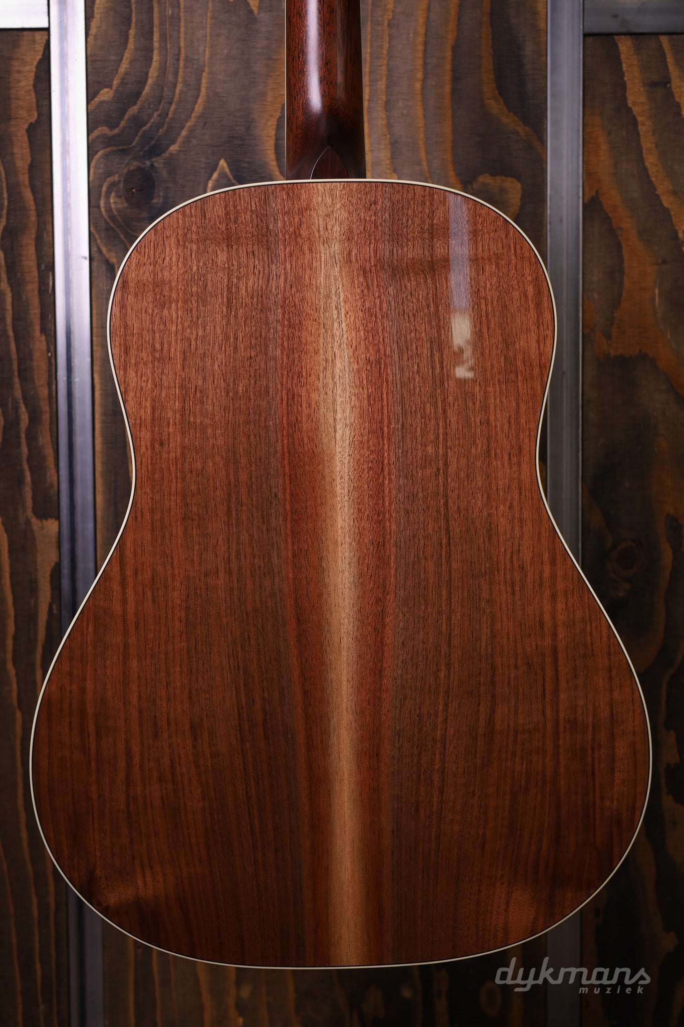 The guitar is built as a short-scale slope-shoulder dreadnought, with a torrefied Adirondack spruce top. This combination delivers a powerful yet refined character: a quick response, clear projection, and the typical warm, punchy mid-range that walnut is known for.