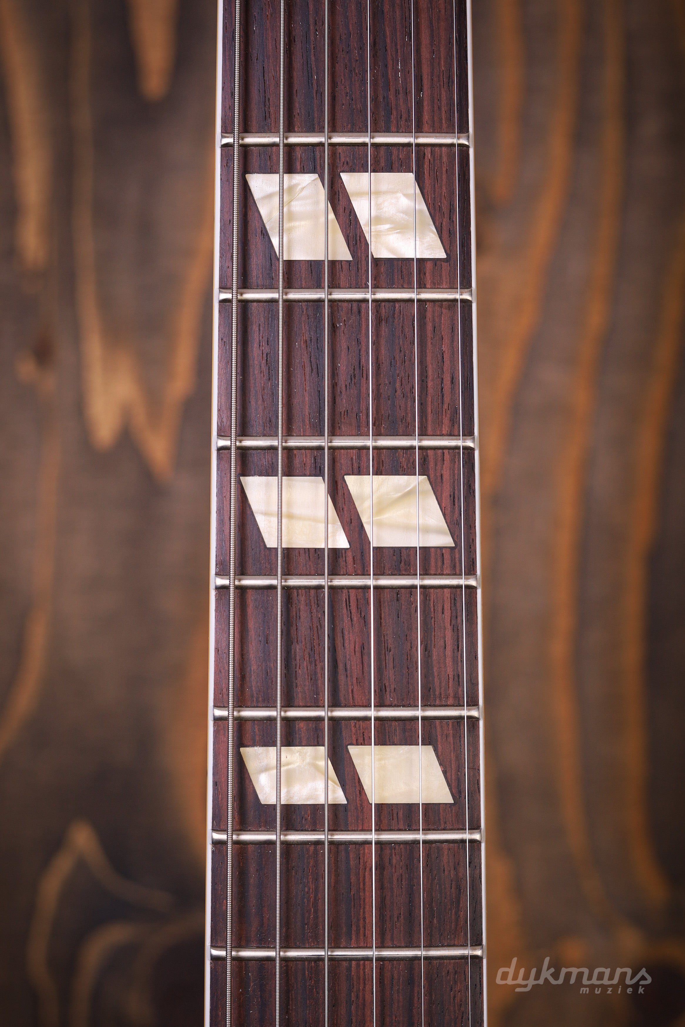 Voor de klank zijn twee Custombucker humbuckers verantwoordelijk – pickups die speciaal zijn ontworpen om de complexiteit en warmte van originele PAF-pickups uit de late jaren ’50 te reproduceren. In combinatie met het klassieke 2 volume / 2 tone circuit en een 3-weg pickupselector levert dit een breed palet aan vintage-geïnspireerde tonen, van warme jazzklanken tot dynamische blues en rock.