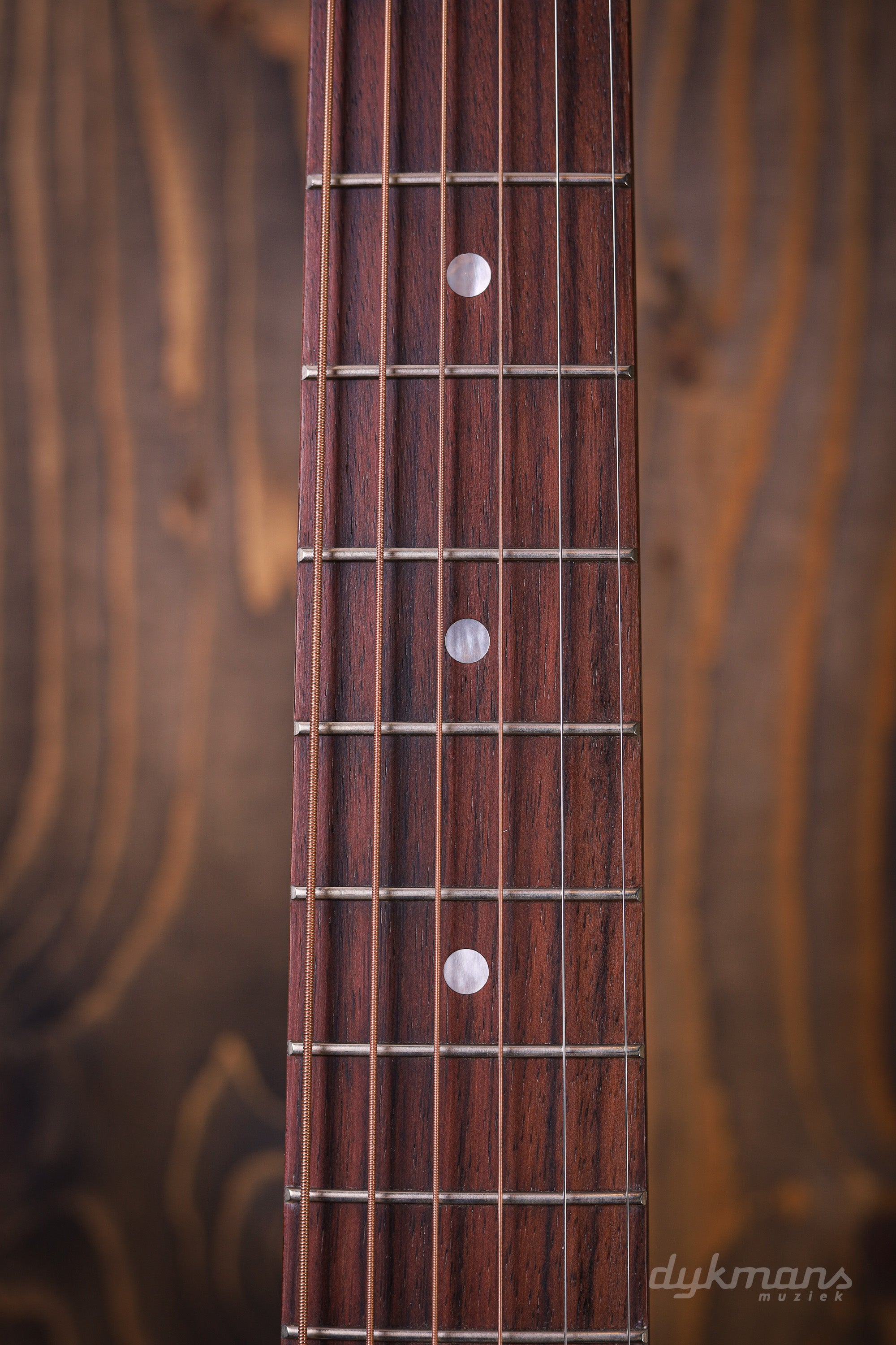 De mahonie hals heeft een comfortabel Rounded profiel en is bevestigd met een compound dovetail halsverbinding, vastgezet met hot hide glue voor maximale resonantie en toonoverdracht. De ongebonden palissander toets telt 20 frets en is voorzien van subtiele mother-of-pearl dot inlays – eenvoudig, stijlvol en tijdloos.