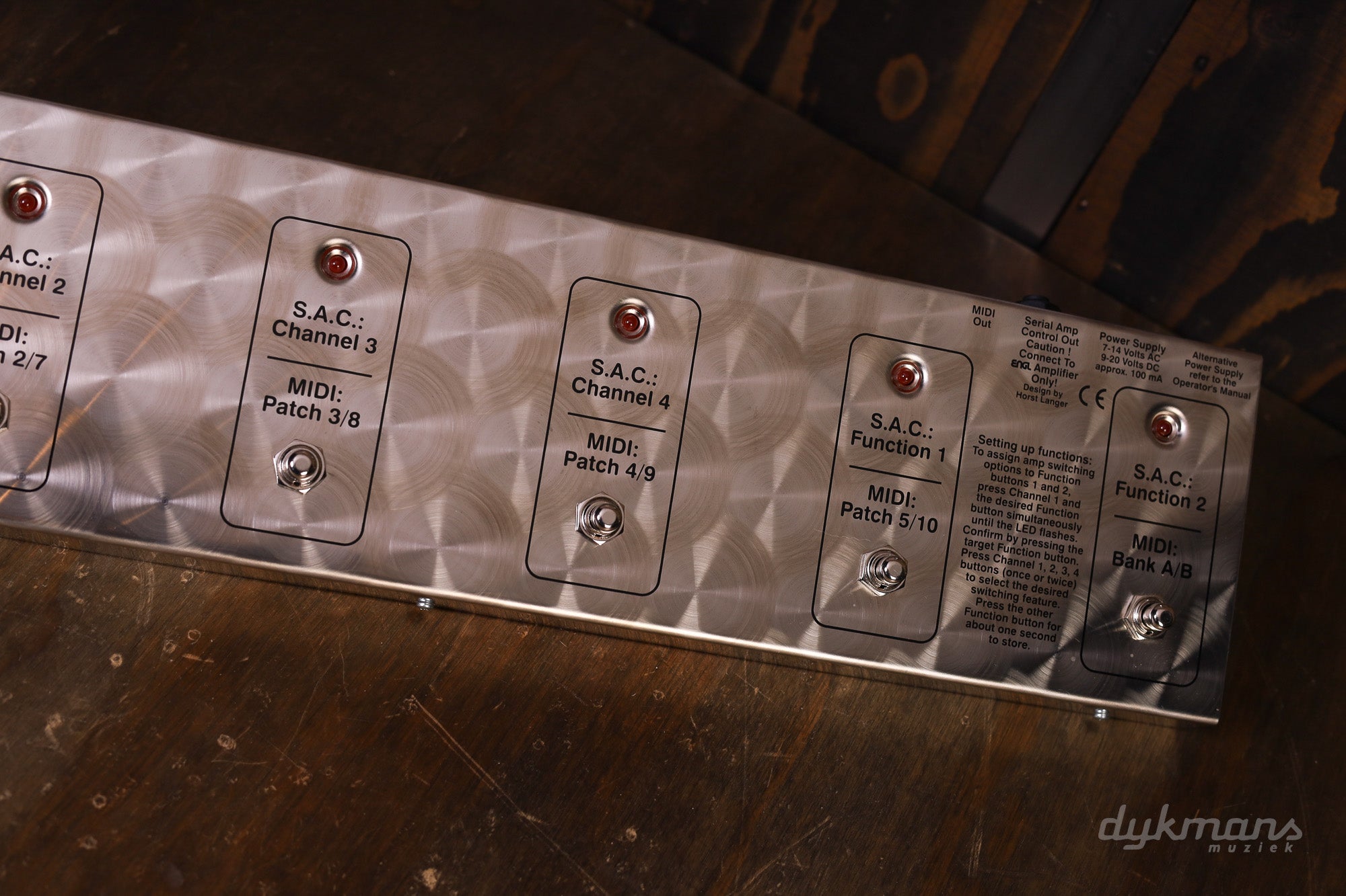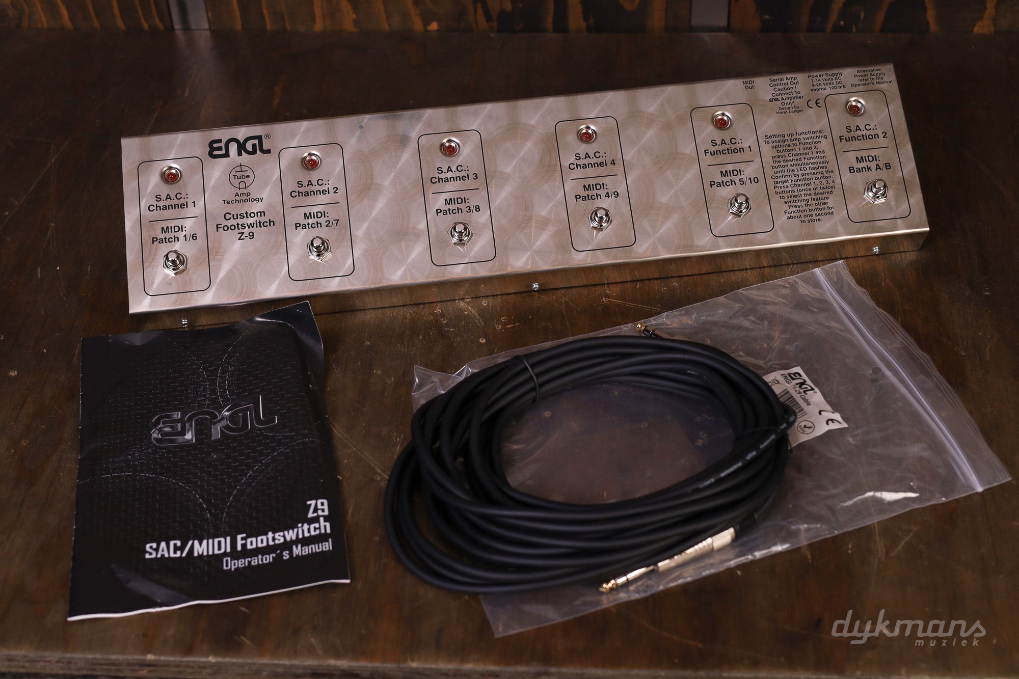 The Z-9 Footswitch can serve as a simple MIDI controller with 10 memory slots or for ENGL amps with SAC operate the Channel switching and other features. Power is supplied via MIDI cable, power supply or SAC interface.