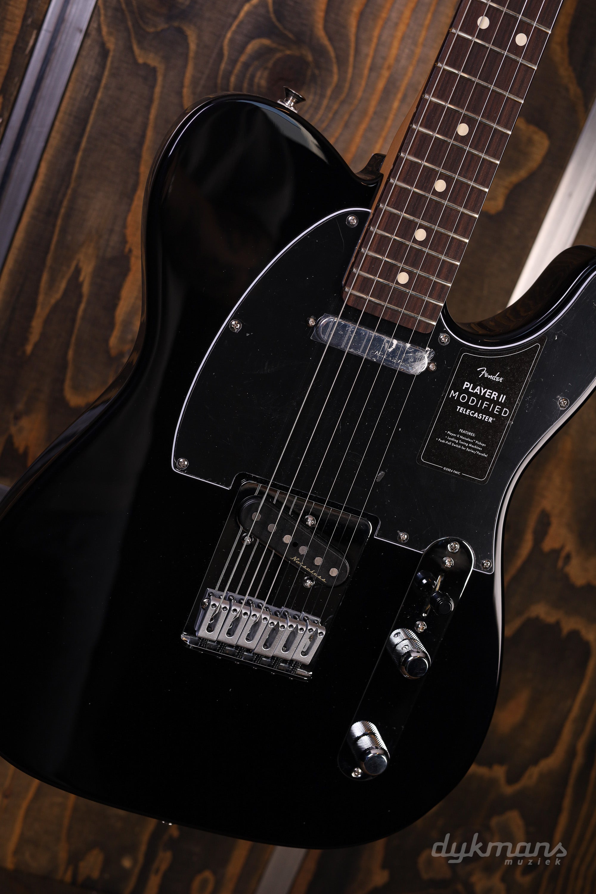 The Player II Modified Telecaster® is a classic guitar with the modern player in mind. Everything about the neck is designed for fast and fluid playability, from the Modern “C”-profile with silky satin urethane finish on the back to the comfy 9.5”-radius slab rosewood or 1-piece maple fingerboard with smooth rolled edges and 22 medium jumbo frets. The alder body provides classic Fender punch and is available in a variety of exciting new finishes. The Player II noiseless™ pickups deliver classic Tele® twang and bite while eliminating unwanted noise and the push/pull switch on the tone control provides even more tonal flexibility by changing the pickup wiring from parallel to series for fatter tones. The 6-saddle bridge, short post locking tuners, TUSQ® nut and modern string tree all combine to keep tuning incredibly stable for even the most demanding bends or roaring rock leads.