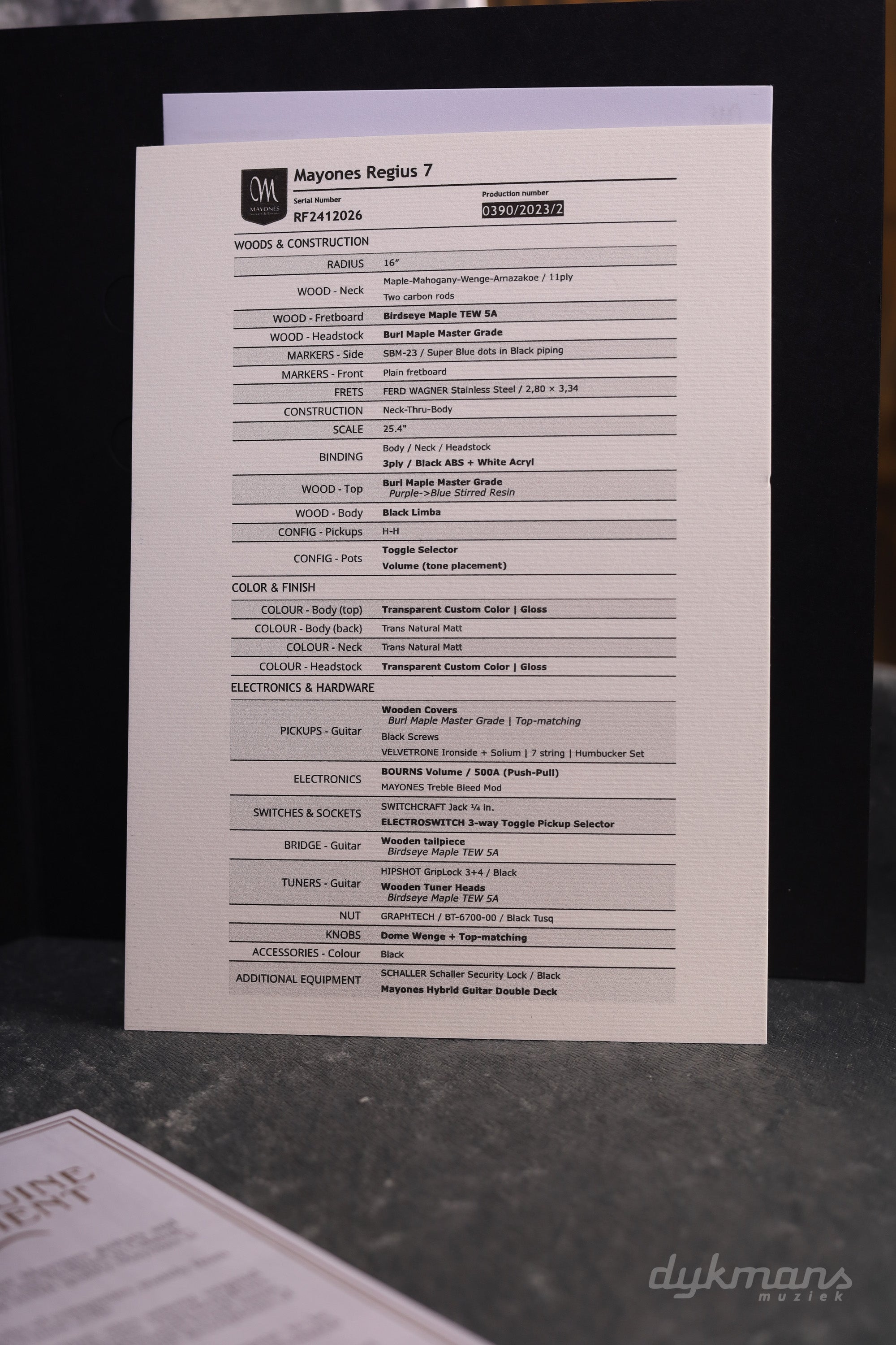 Mayones Regius 7 Buckeye Burl Master Grade Custom Color PRE-ORDER