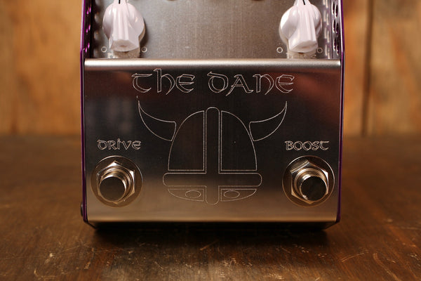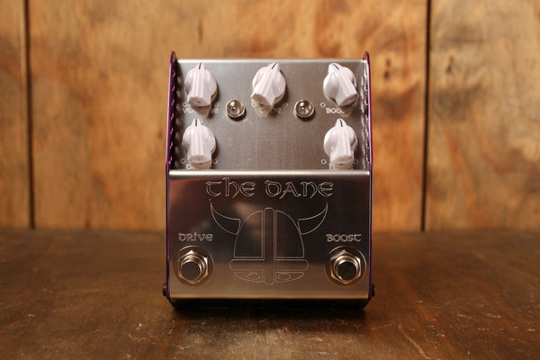 THE DANE is a creation designed to meet the exacting needs of Danish Pete. However due to the design brief needing to cover the wide palette of sounds he uses, the pedal finished up being the most versatile pedal available on the market for such a clean design. THE DANE has two sides - a complex light to medium gain overdrive on the left and a high headroom super clean boost on the right. The pedal is designed so that the boost runs into the drive side. This yields three distinct tonal variations ranging from clean boost all the way through to full and fat saturation. The pedal is also designed to clean up impeccably from your volume control and as such it is ideal for dynamic players who like to adjust their playing style.